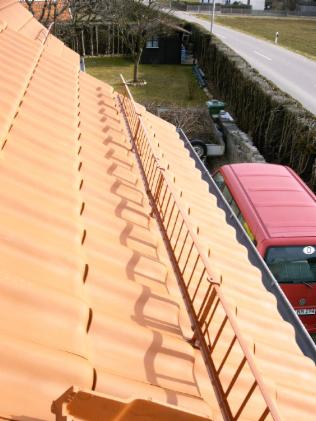 Scheefanggitter verzinkt, rot beschichte; der Dacheindeckung angepasst